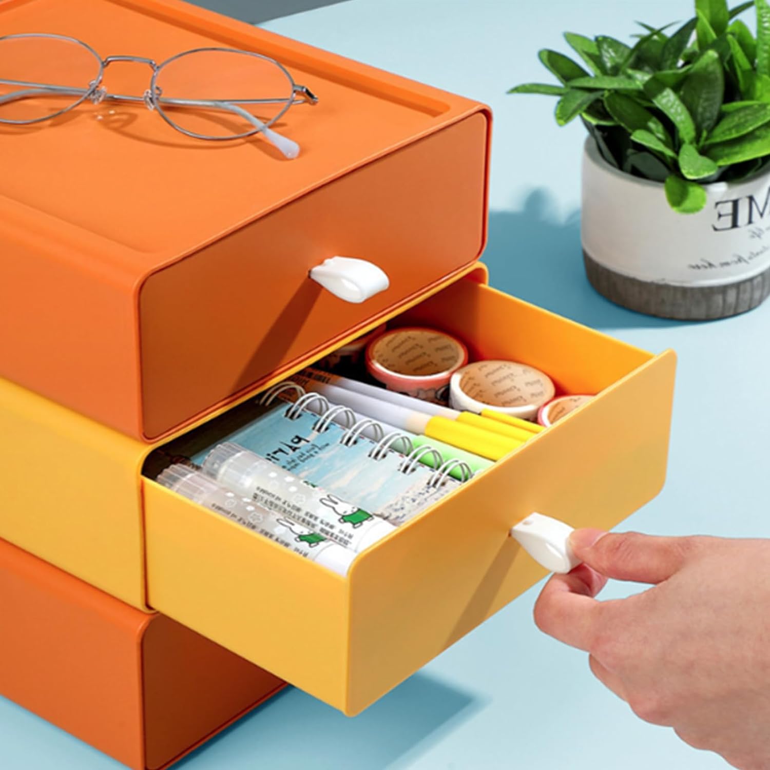 Keep your workspace organized and clutter-free with the 6 PCS Desk Organizer with Drawers. This stackable desktop storage solution features large capacity drawers to keep all of your office supplies neatly stored and easily accessible. Made of durable plastic, this desktop organizer is perfect for use in the office, school, or home.