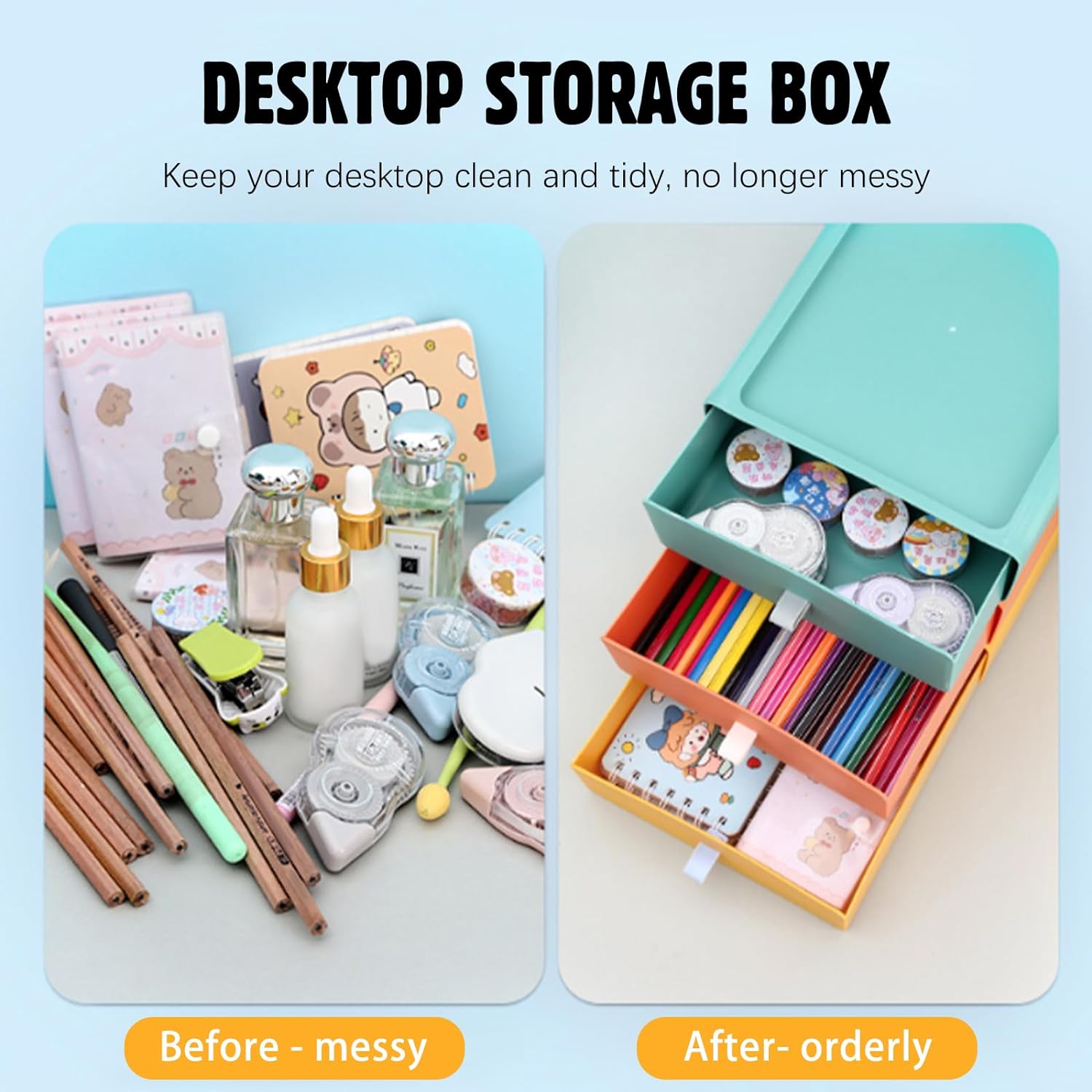 With three different color options to choose from, you can customize your workspace to fit your personal style. Say goodbye to messy desks and hello to a more productive work environment with the 6 PCS Desk Organizer with Drawers. Order yours today and start organizing your space with ease.