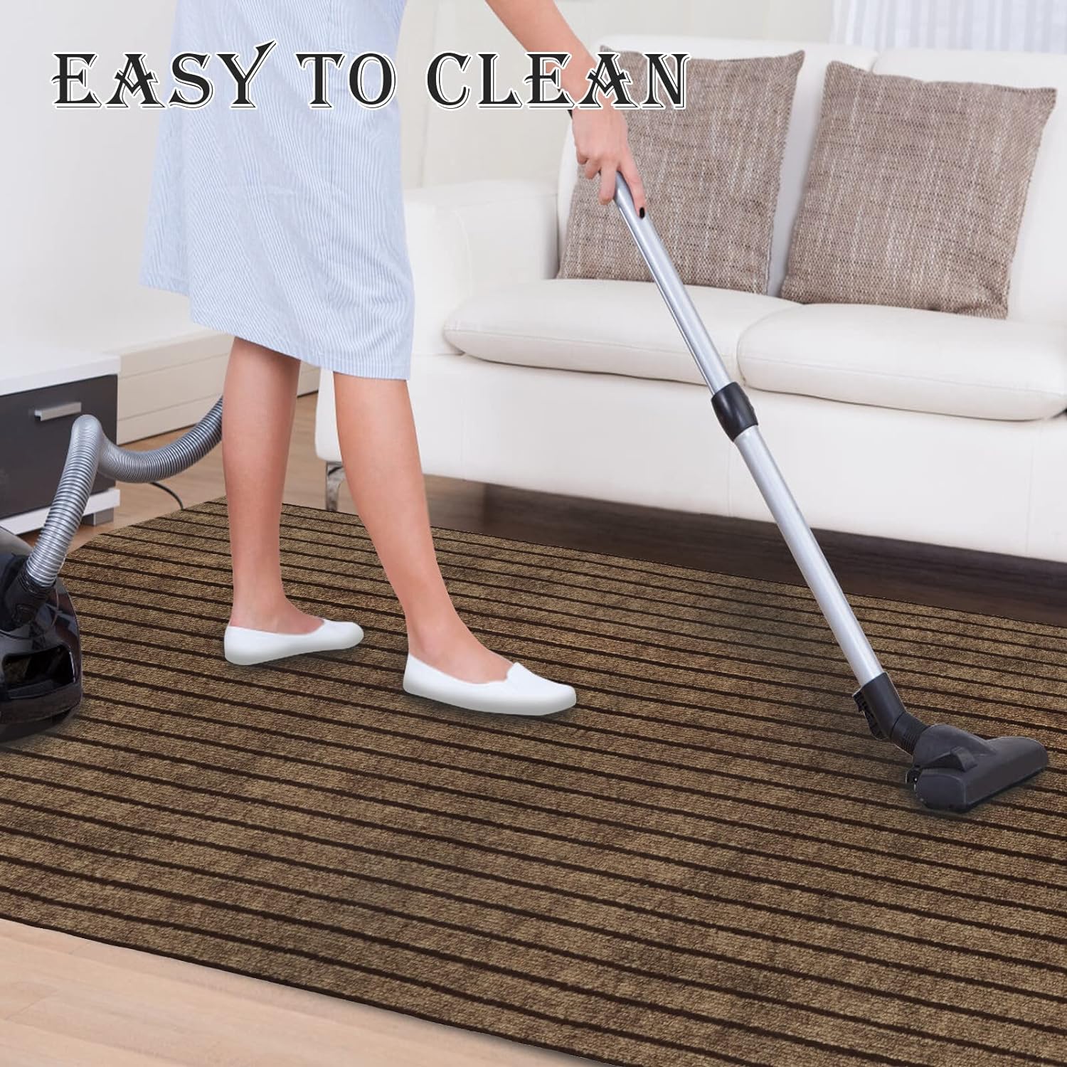 The runner rug features a modern brown and brown strip design that will complement a variety of decor styles. It is easy to clean and maintain, making it ideal for high-traffic areas. Plus, the AYOHA Runner Rug is available in custom sizes to fit your specific needs.