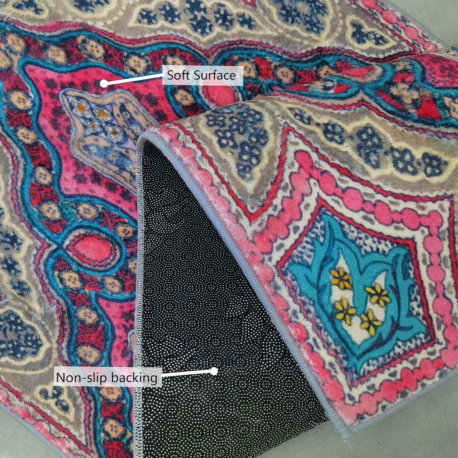 Boho Rug Runner – 2×4.3 Medallion Distressed Area Rug Entryway Doormat Non-Slip Washable Hallway Throw Rug Floor Carpet for Living Room Kitchen Laundry Bedroom Bathroom