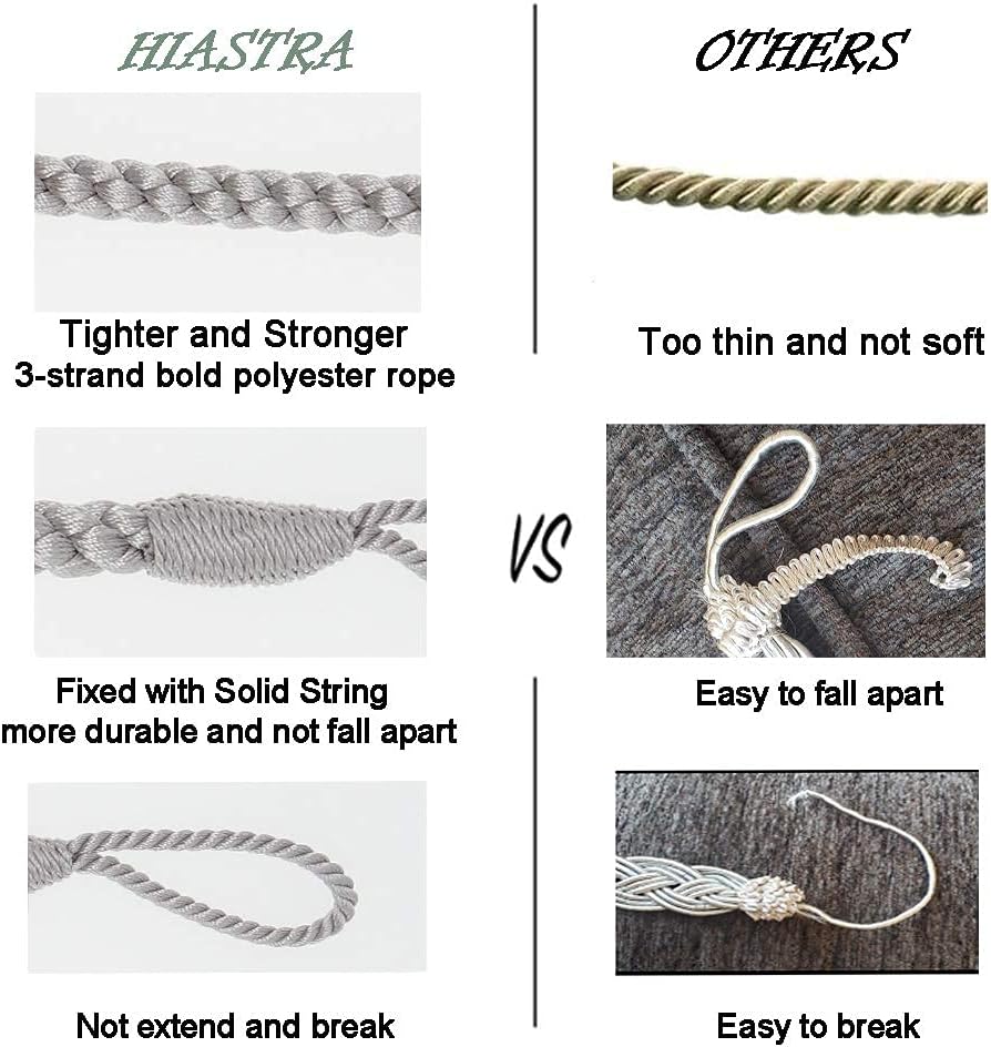 The grey color of these tiebacks makes them versatile and easy to match with a variety of curtain styles and colors. The durable cord construction ensures that these holdbacks will securely keep your curtains in place while adding a stylish finishing touch to your windows.