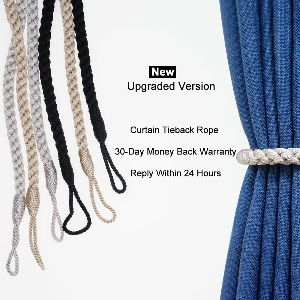 Curtain Tiebacks Ropes, 2pcs Decorative Handmade Tie Backs Curtain Holdbacks Holders Cord for Window Sheer Drapes Indoor Outdoor, Grey