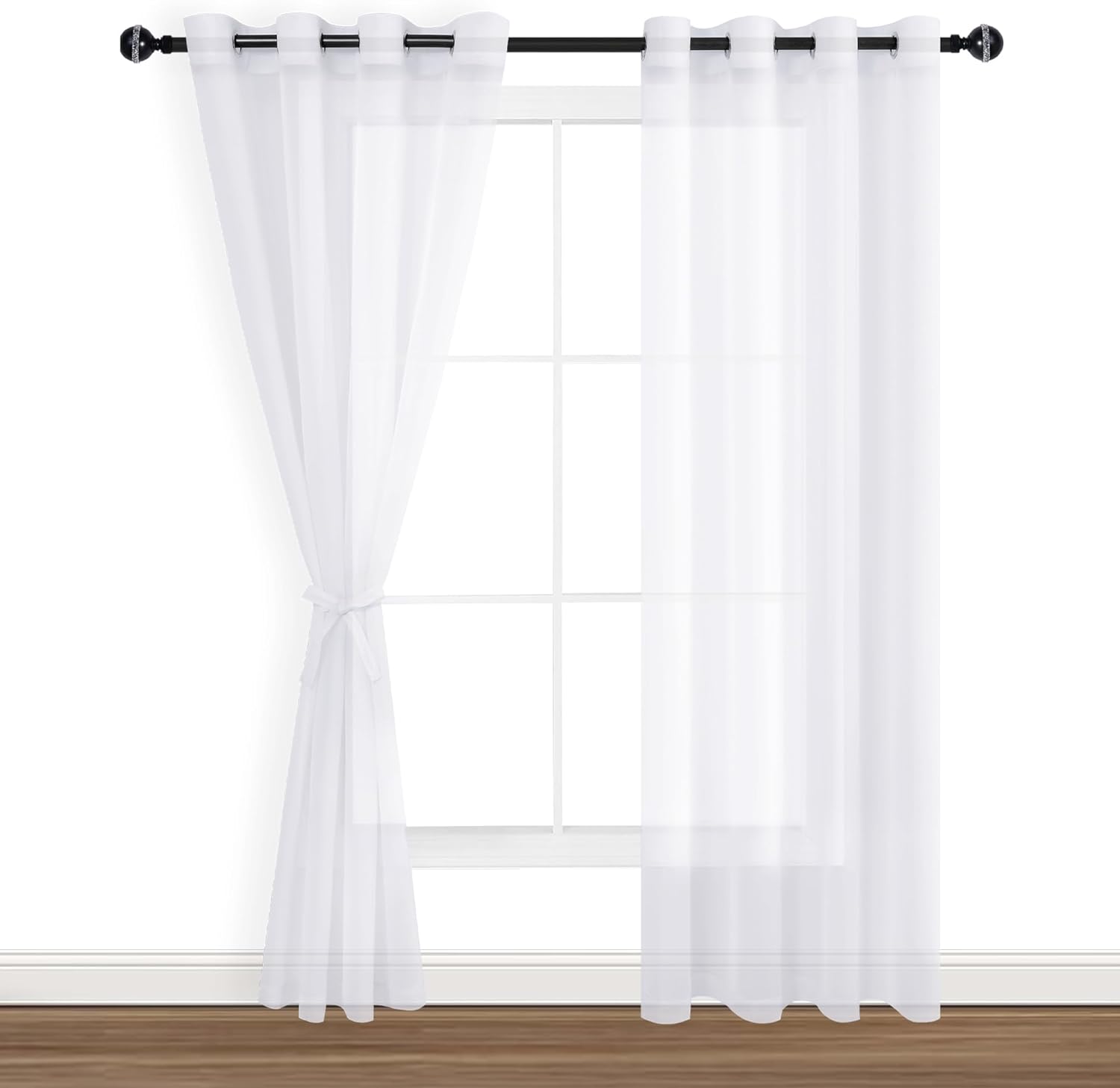 Hiasan White Sheer Curtains 84 Inches Long with Tiebacks, Light Filtering Semi Transparent Lightweight Voile Grommet Window Curtains for Bedroom, Living Room, W52 x L84, Set of 2 Drape Panels