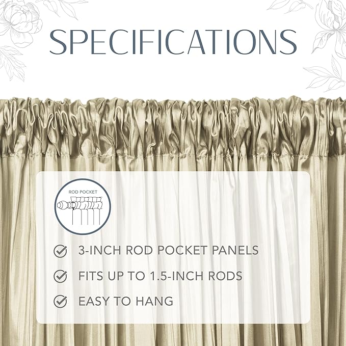 - HIGH-QUALITY HOME DECOR: Made from durable 100% polyester, this opulent window-panel set adds luxury to your home. The 3-inch rod pocket will fit a 1 1/2-inch-diameter curtain rod.